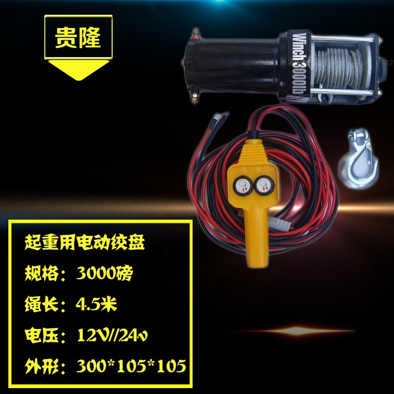 24V electric winch winch small crane off-road vehicle traction self-rescue DC winch hoist 12v