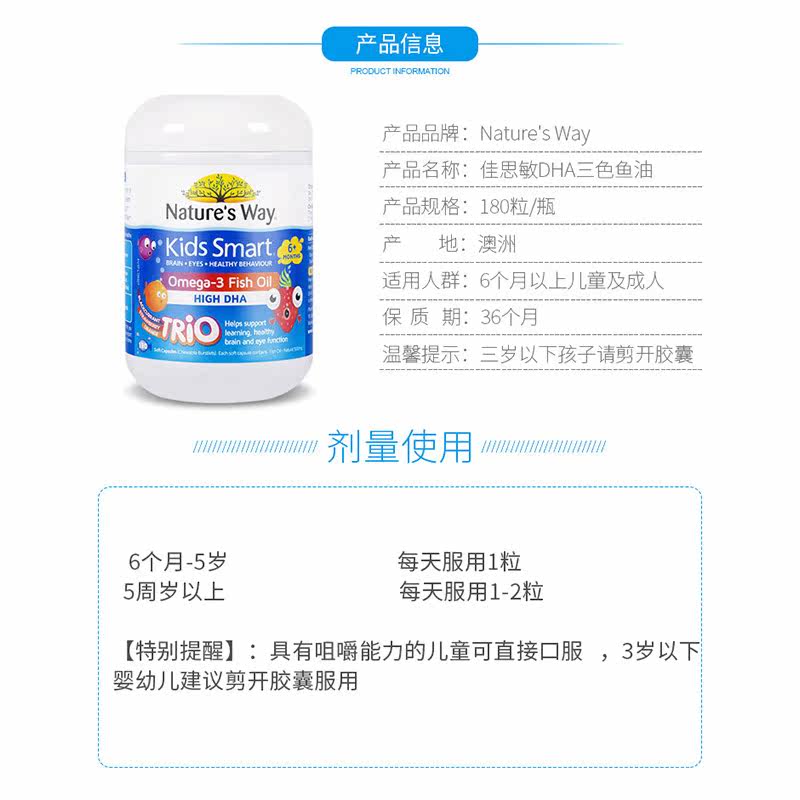 Natures Way Children's fish oil Po Vision 180 Grain Three-Taste Fish Oil 3 packs Australia Direct Mail