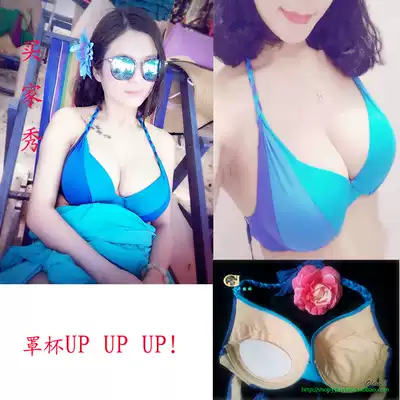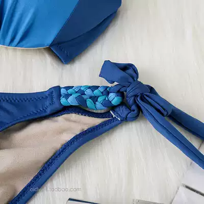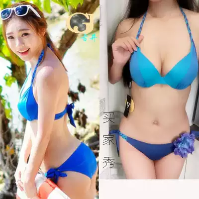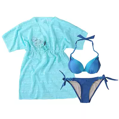 Gather steel support blue three-piece beach bikini seaside steel ring sexy small chest swimsuit big breasts women swimsuit