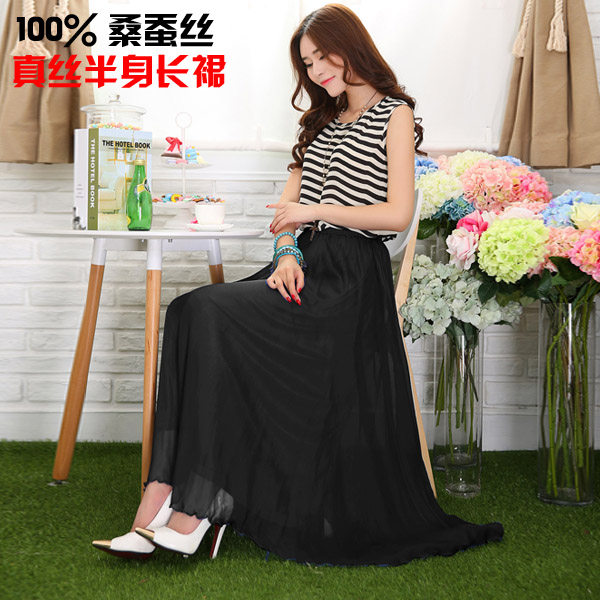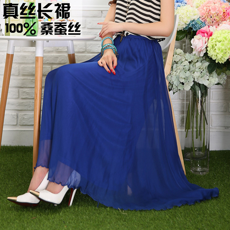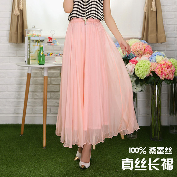 Multicolored smoke pink silk silk silk long skirt large swing skirt high waist woman summer dress clearing warehouse