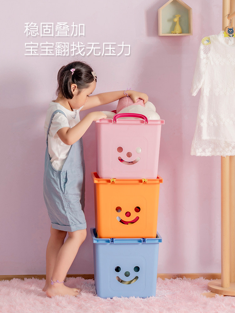 Alice children's smiling face toy storage storage basket plastic finishing box with wheels thickened storage box Alice