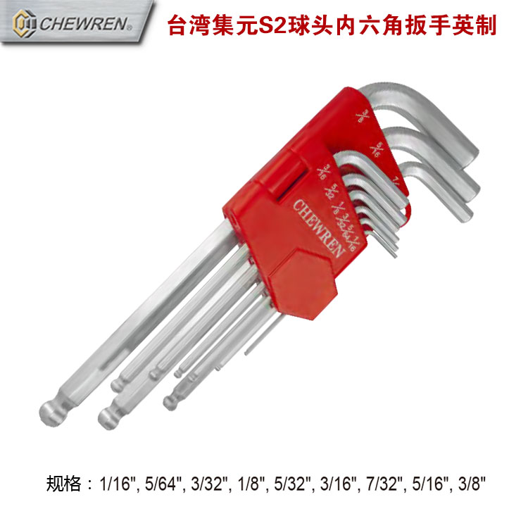 Taiwan Jiyuan extended 9-pack wave head hex key S2 ball head hex wrench set male imperial hex bar