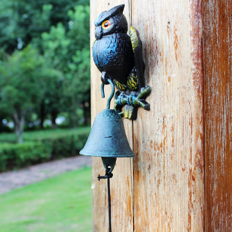 High-grade cast iron European pastoral stereo owl iron doorbell hand doorbell retro courtyard decoration wall decoration