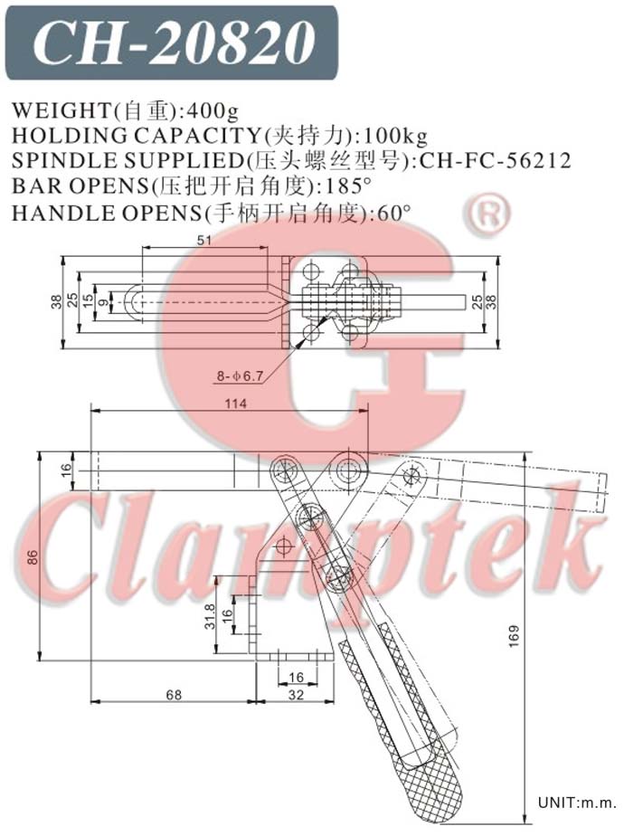 Fast fixture Jiagang CH - 20820 Fixture Clamp Vertical - type Horizontal Pressure Clamp