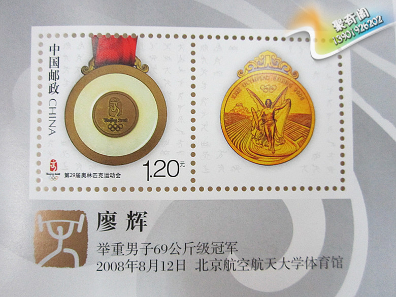 Gold Medal Personalized Stamp Liao Hui Men's 69kg Weightlifting Gold Medal Commemorative Head Office Postal Pack