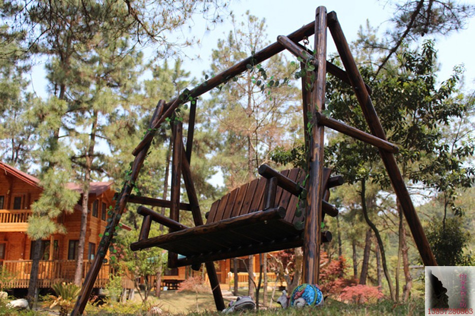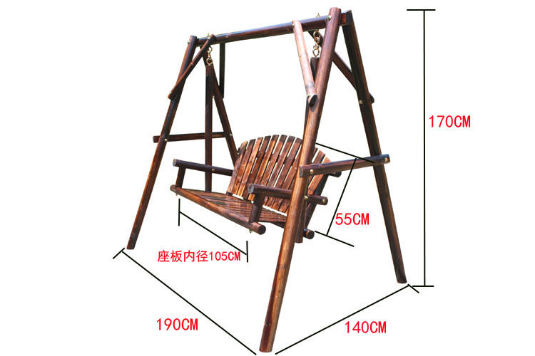 Preservative wood pure solid wood outdoor wood swing wood Qianqiu hanging chair wood chair carbonization carbonized wood chair swing rocking chair
