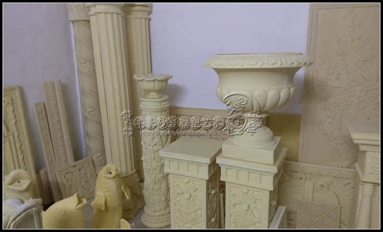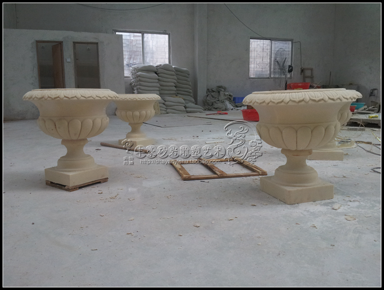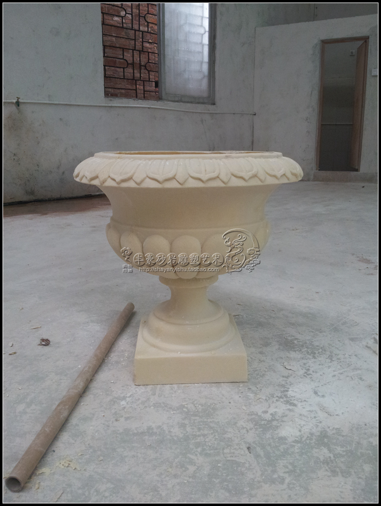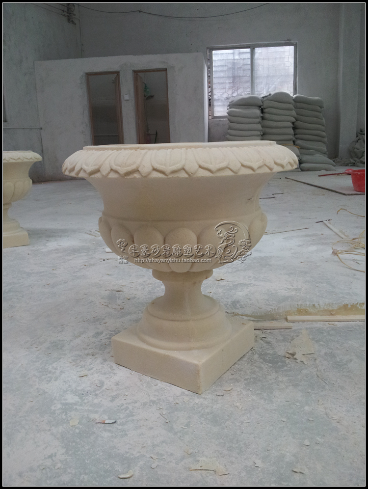 Fonhaute sandstone background wall relief frescoed garden water spray sculpted flower pot flower pot★H033 leaf flower pot