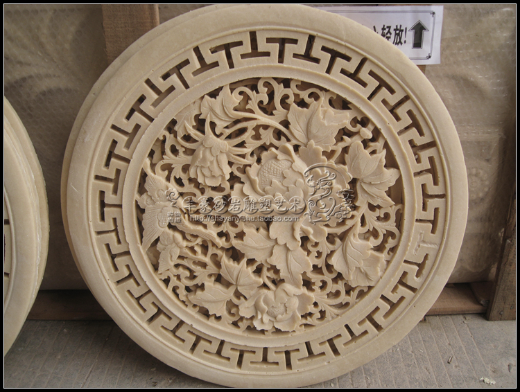 Fenghao Sandstone Baselic relief murals Flower pot Roman column Garden sculpture Hangpin ★ G037 Peony sculptures