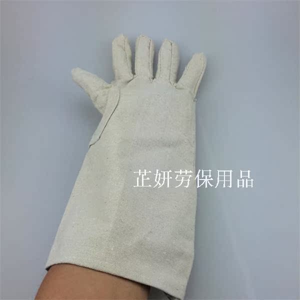 Lengthened canvas gloves Electric welding heat-resistant gloves Labor protection wear-resistant gloves Fully lined canvas work gloves