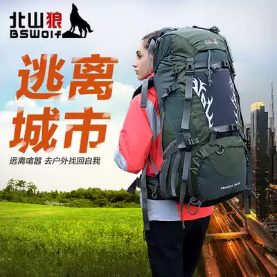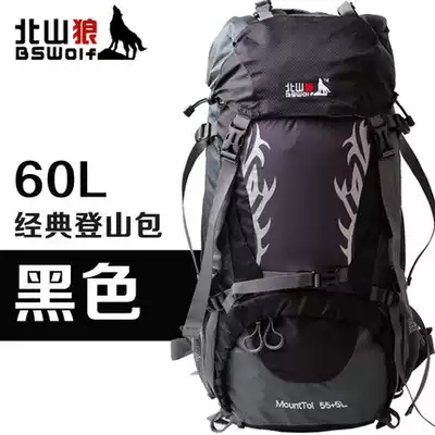 Beishan Wolf 60L Mountaineering Bag Outdoor Travel Large Capacity Shoulder Hiking Backpack with Backfall System Rain Cover
