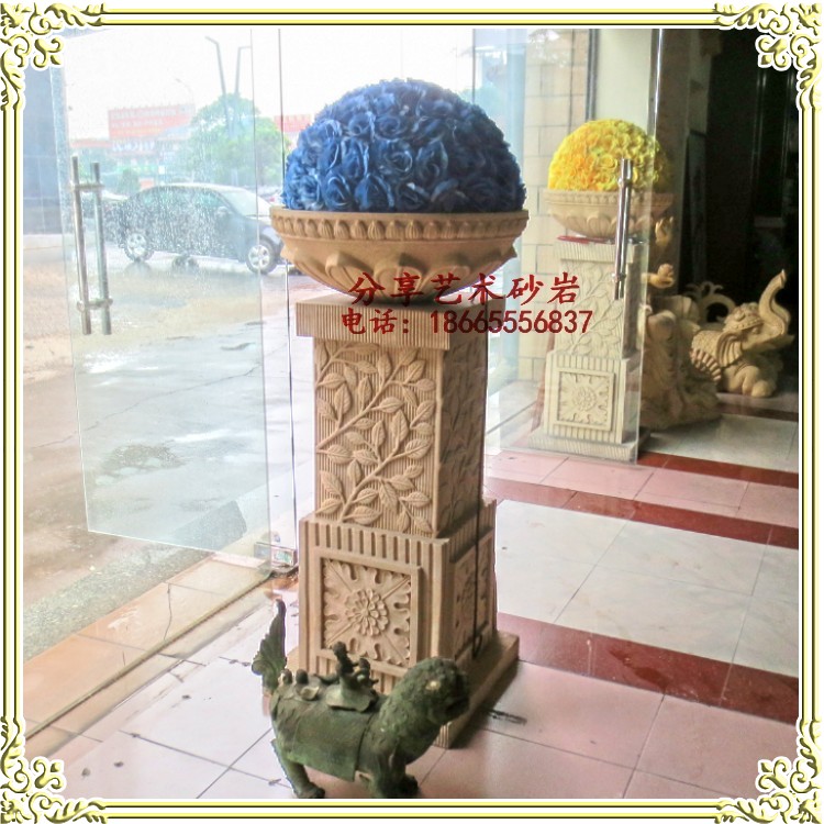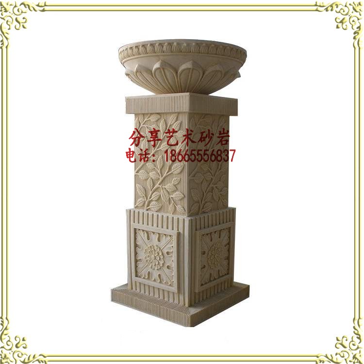 Sandstone round carved sandstone embossed Roman column landscaped community clubhouse decorated with flower-leaf column basin fiberglass column pier
