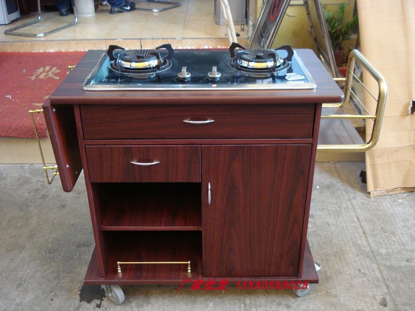 Hotel Dining Room Superior Fashion Double Head Wood Cooking Car Two-floor Service Cart Restaurant With Dining Car Dining Side Car