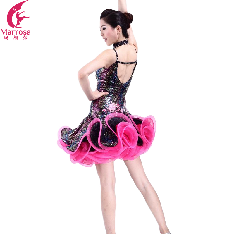 Marrosa Latin dance performance with bright sheet V collar harness laminated lotus leaf edge precisely square dance