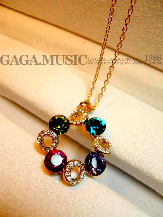 European and American fashion elegant simple circle circle combination hollow ring necklace color crystal pendant jewelry female