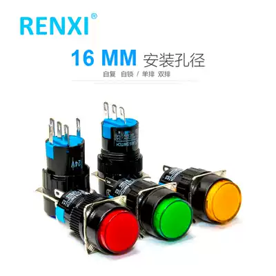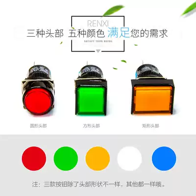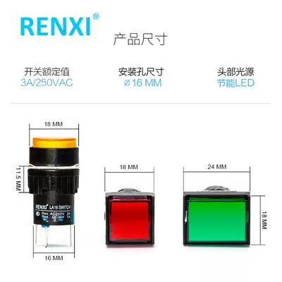 RENXI push button switch LA16 round rectangular self-locking self-reset mounting hole S 16MM Red Green