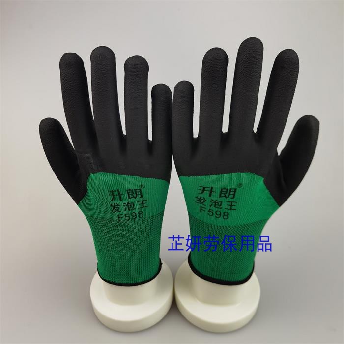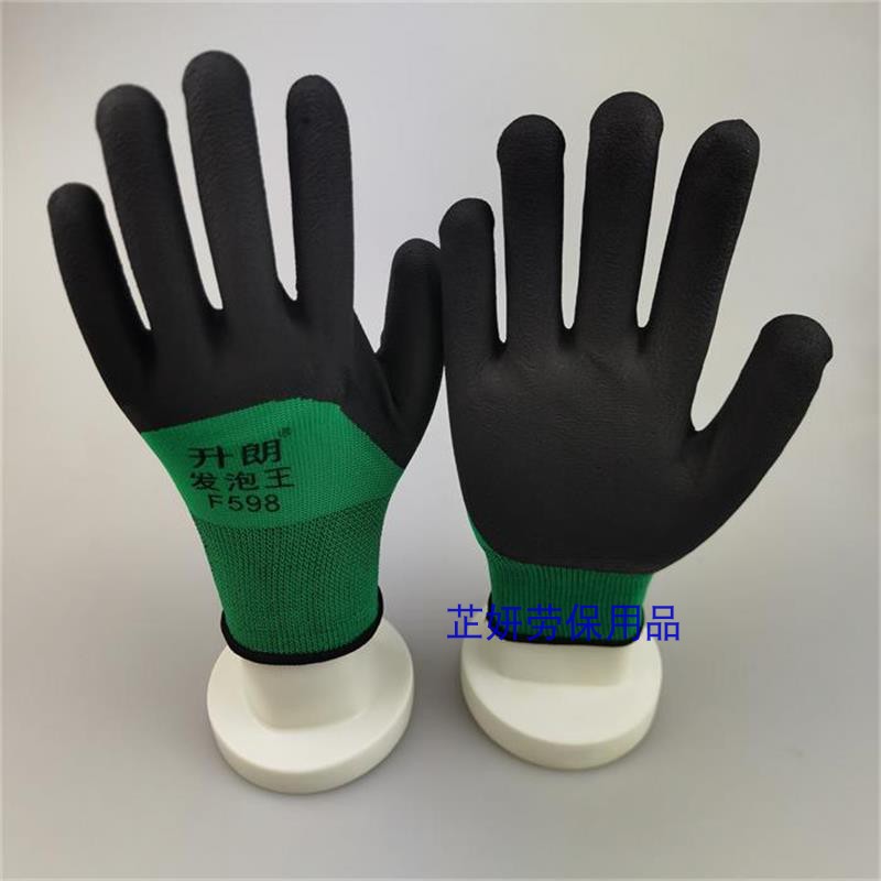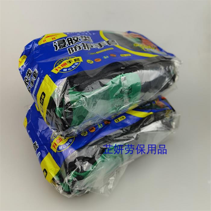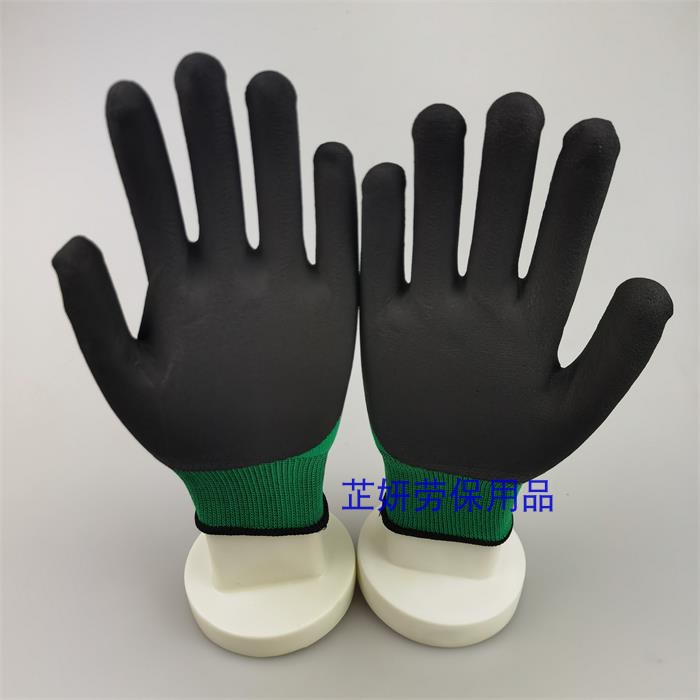 Hengluang green yarn black foaming gloves 12 double price to green yarn black foaming gloves 36 double price