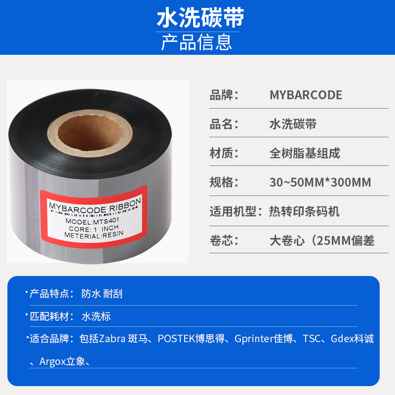 Full resin ribbon 40mm*300m Clothing washed label Washed label with ribbon printing clear washable