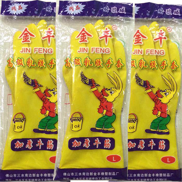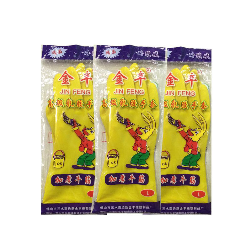 Jinfeng rubber waterproof gloves Household cleaning kitchen washing clothes Plastic leather gloves durable thickened