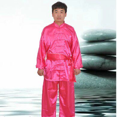 Simulation silk tai chi practicing martial arts suit collective performance suit rose red male and female adult children