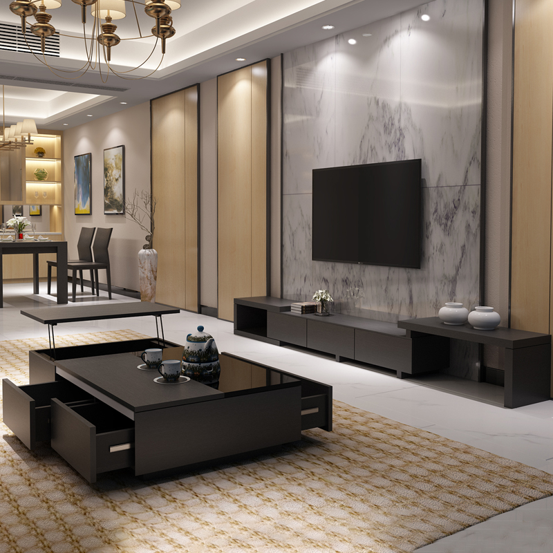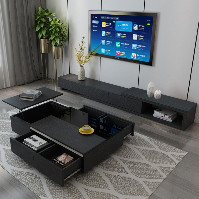 Coffee table living room modern minimalist size tempered glass black multi-function lifting coffee table TV cabinet combination