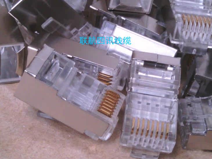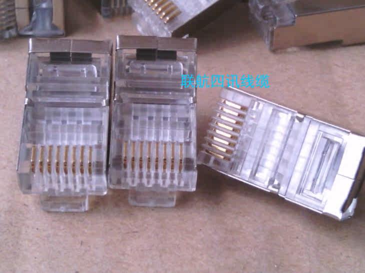 Super six shielded crystal head RJ45 network crystal head 8-core gold-plated national standard tested Gigabit network cable head