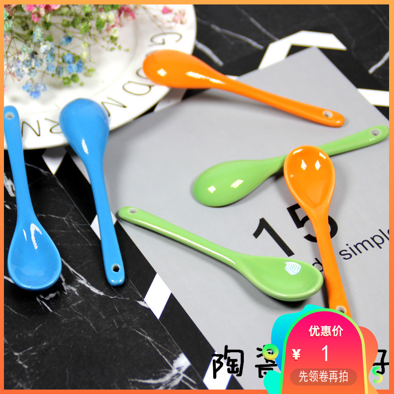 Thermal transfer new blue white green ceramic diy color change Mark coffee water cup matching color small porcelain spoon