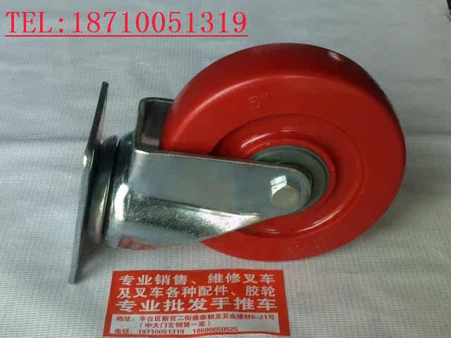 Caster universal wheel 5 inch all-inclusive red polyurethane wheel silent wheel wheel diameter 125mm pu wheel