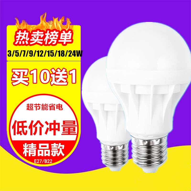 Buy 10 send 1 super bright LED energy saving light bulb E27 screw mouth 3W5W7W9w12w15w20W ball bubble single light source
