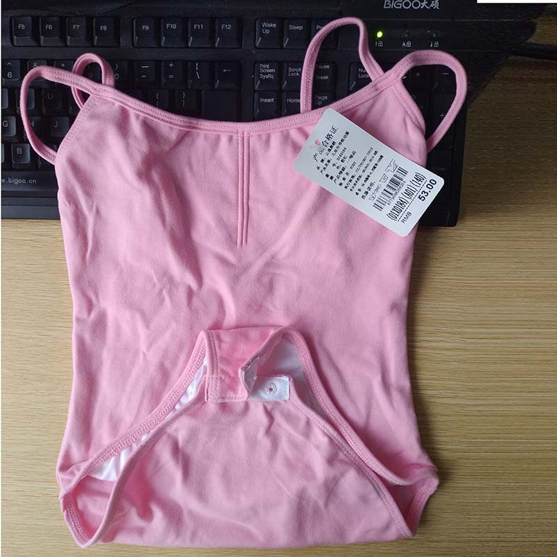 Children with double belt large back one-piece suit cotton gymnastics suit exam grade body dress ballet dance costume practice powder children
