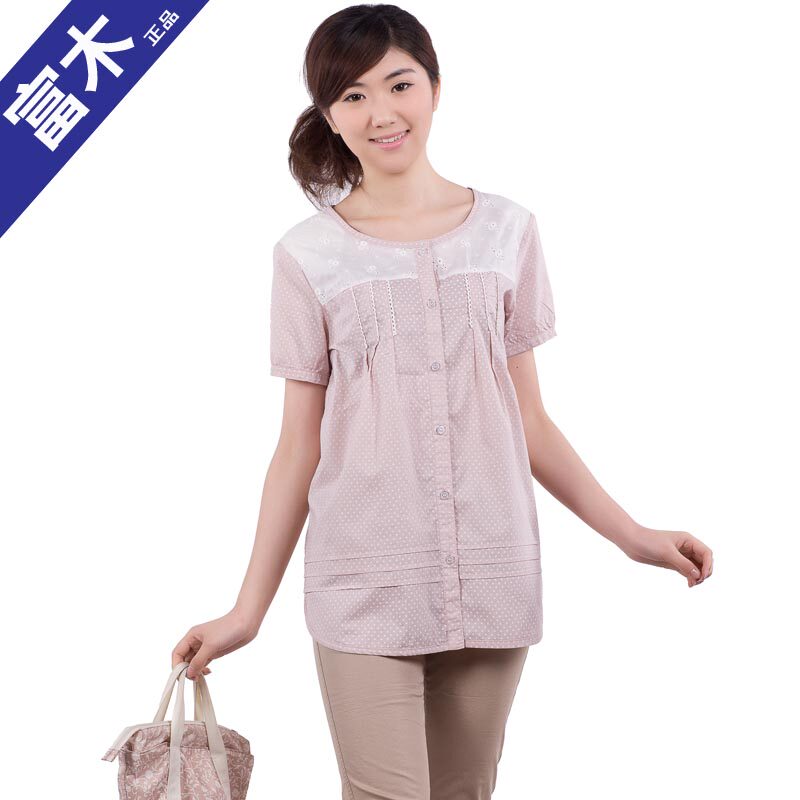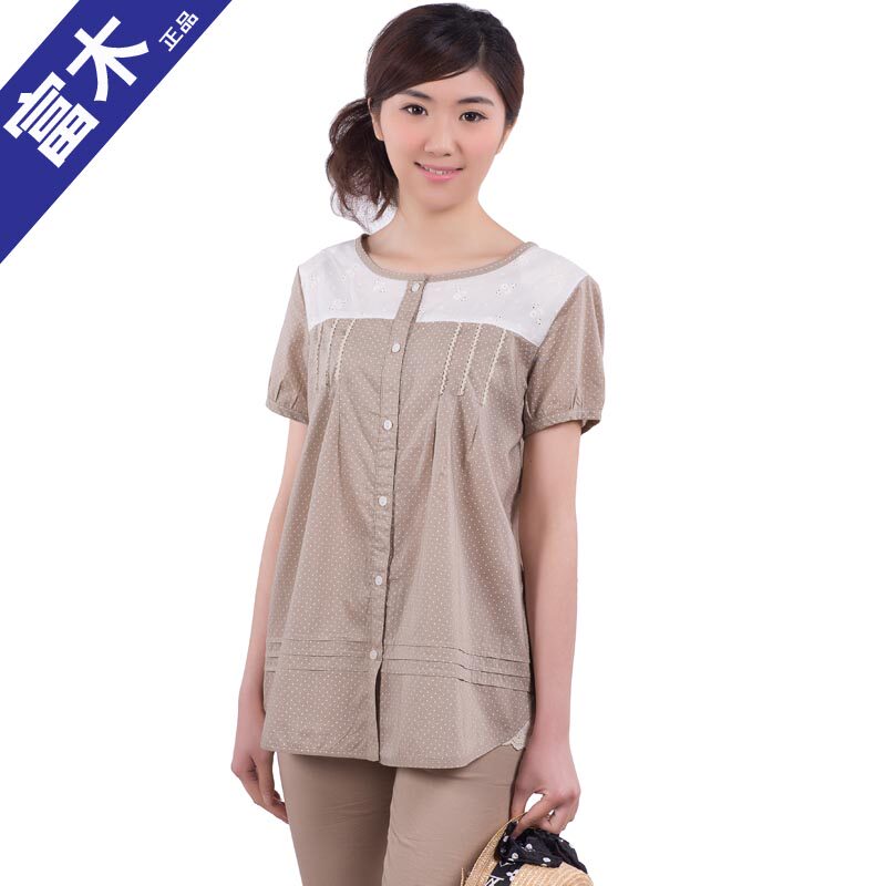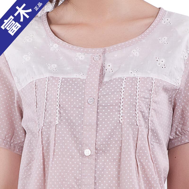 Fumu MQ-239N new girl's shirt stitching cotton polka dot short-sleeved shirt cotton casual women