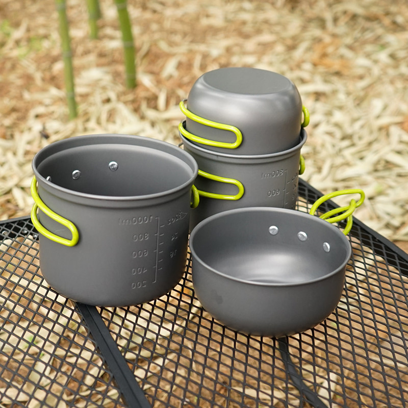Outdoor pot cooking utensils 2-3 people set portable picnic supplies equipped with portable non-stained pot thick camping set pot
