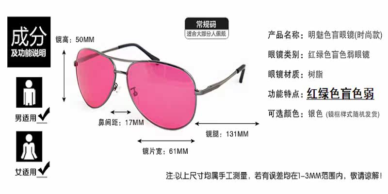 Bright Red Green Large Frame Color Blind Color Weak With Frame Glasses Fine Art Construction Defense View Design Picture Color Custom Myopia
