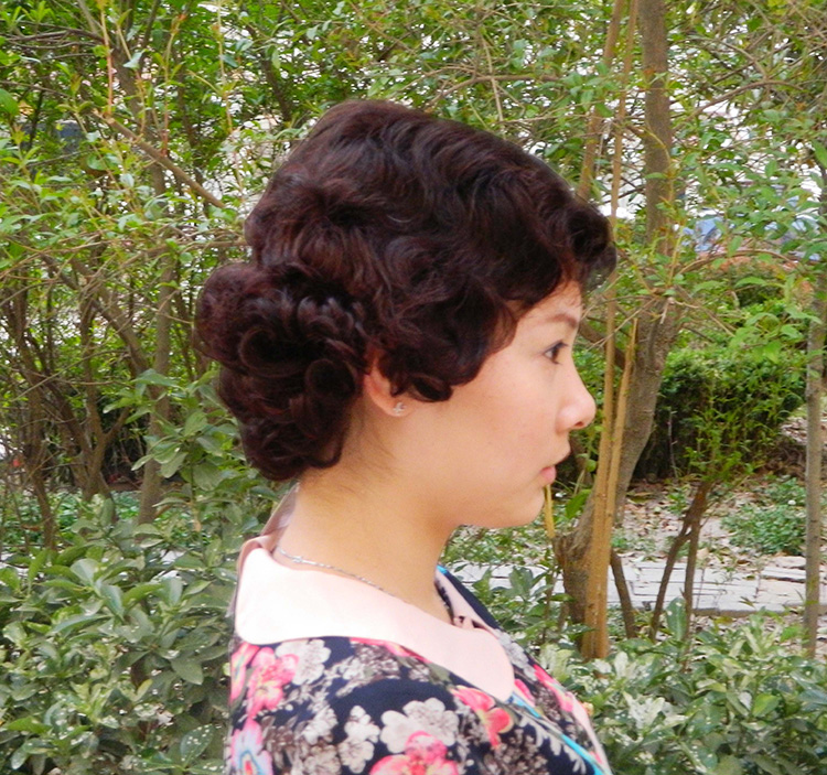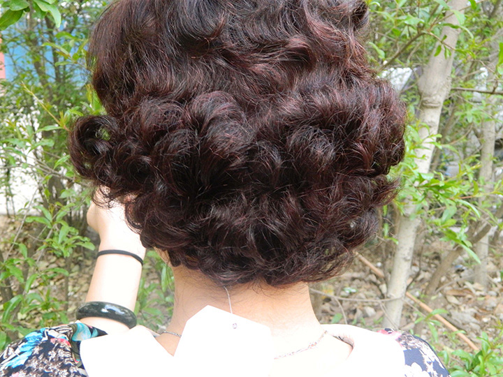 Hao Yiquan Real Hair Anti-Scalp Split Middle Aged with full headgear After turning up the female wig