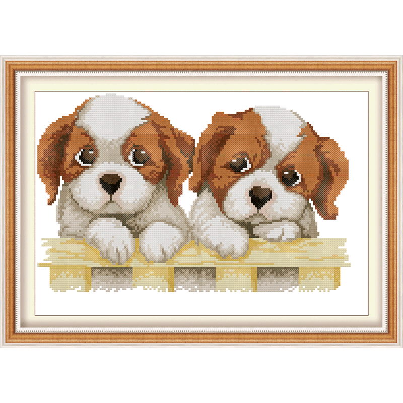Small piece of cross stitch embroidery New simple new hand New pint headboard Animals small Puppy small 2022 Bedroom small