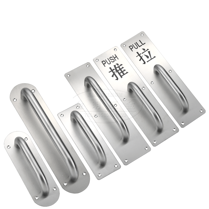 Thickened stainless steel round surface mounted bottom plate handle Channel door fire door stainless steel handle send screws