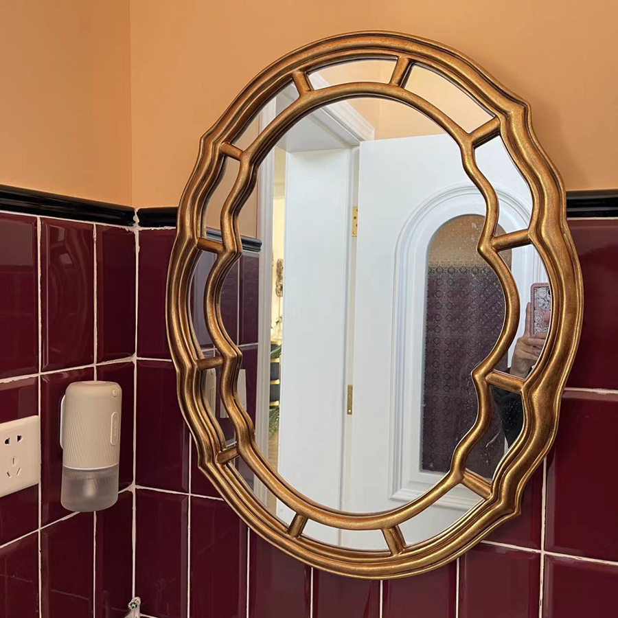 Living Room Minimalist Eu Style Bathroom Mirror Oval Bathroom Mirror Decoration Mirror Makeup Table Style Genguan Wall-mounted Cosmetic Mirror