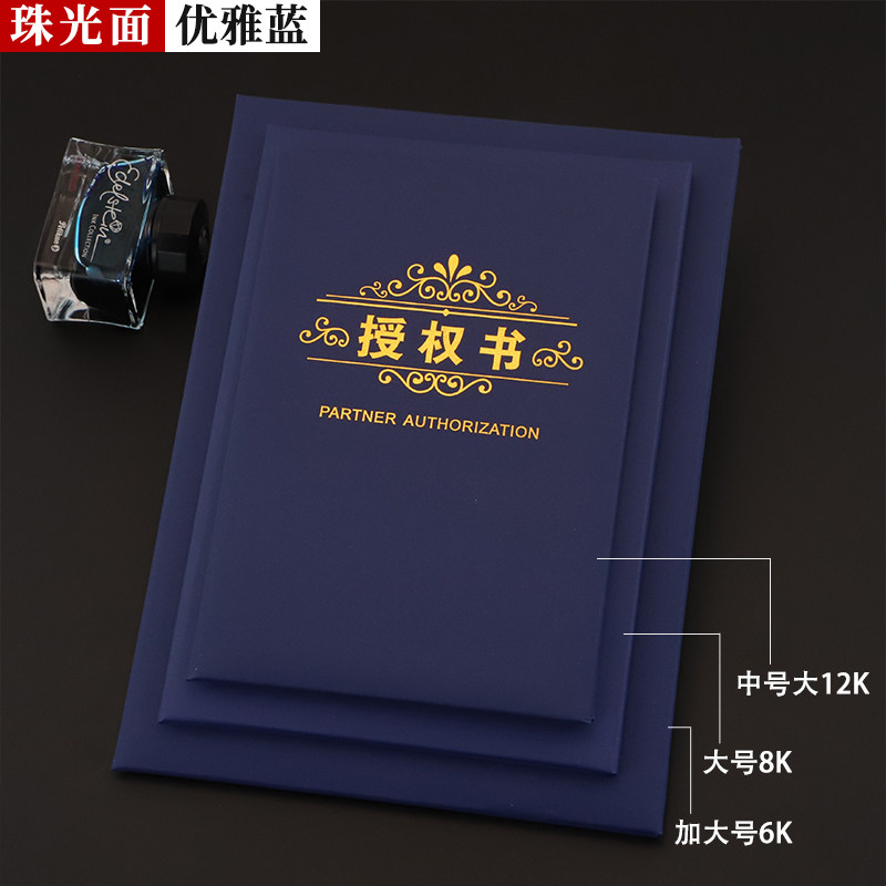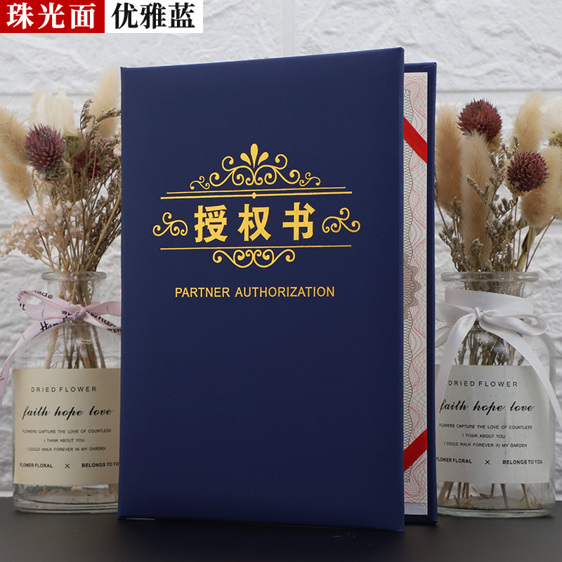 Frosted pearlescent A4 authorization certificate Photo frame agency authorization certificate Certificate frame hard board photo frame Red and blue shell cover production custom-made custom-made A3a4 inner page inner core design typesetting and printing