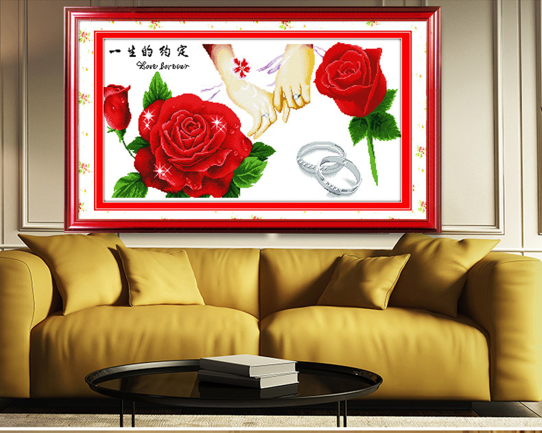 Cross embroidered lovers romantic bedroom 2022 new rose line embroidered living-room wedding house wedding sends a happy family