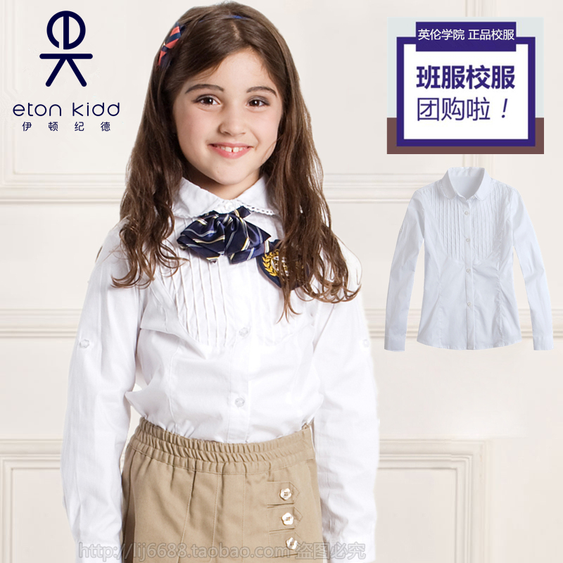 A Eaton Guild Inn School Uniform Primary School Pupil Long Sleeve White Shirt Children's College Standard Round Collar Lace Shirt Woman