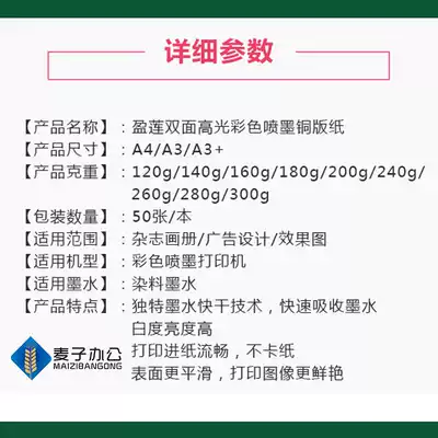 Double-sided high-gloss inkjet coated paper A4160g200g color spray can Copper paper magazine printing photo paper business card menu paper