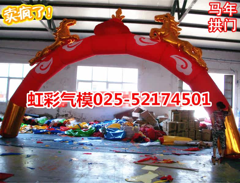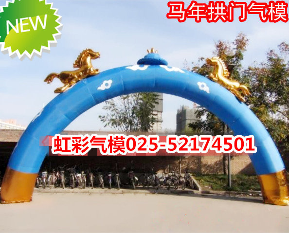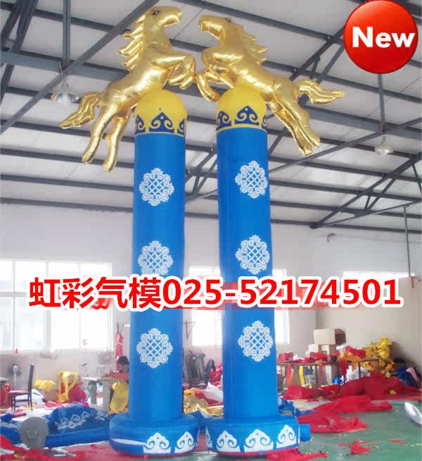 Horse inflated red golden horse arch Mongolia dual horse heads New Year cartoon column celebration air - mounted ventilator