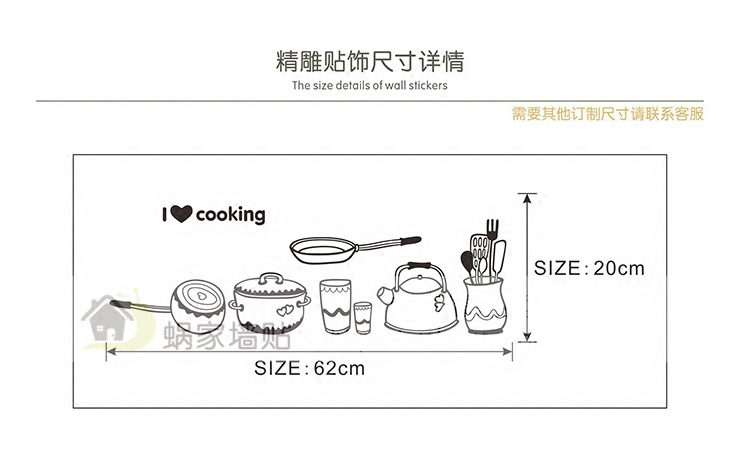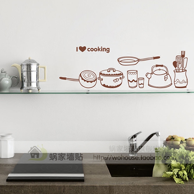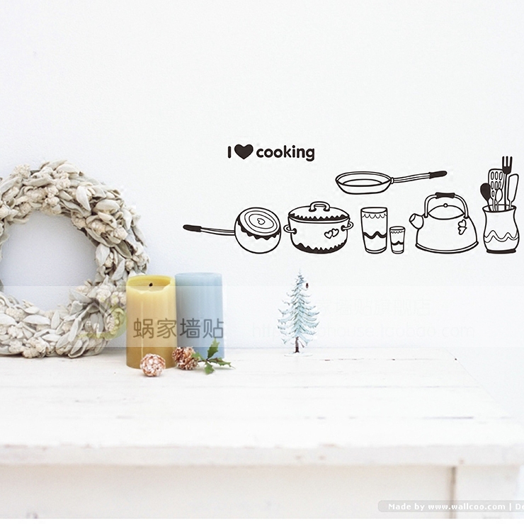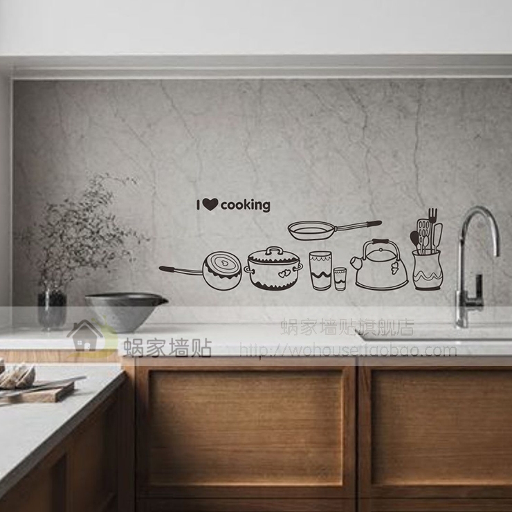 I love cooking all kinds of kitchen utensils wall stickers kitchen restaurant refrigerator cabinet background self-adhesive wall stickers wallpaper decorative painting