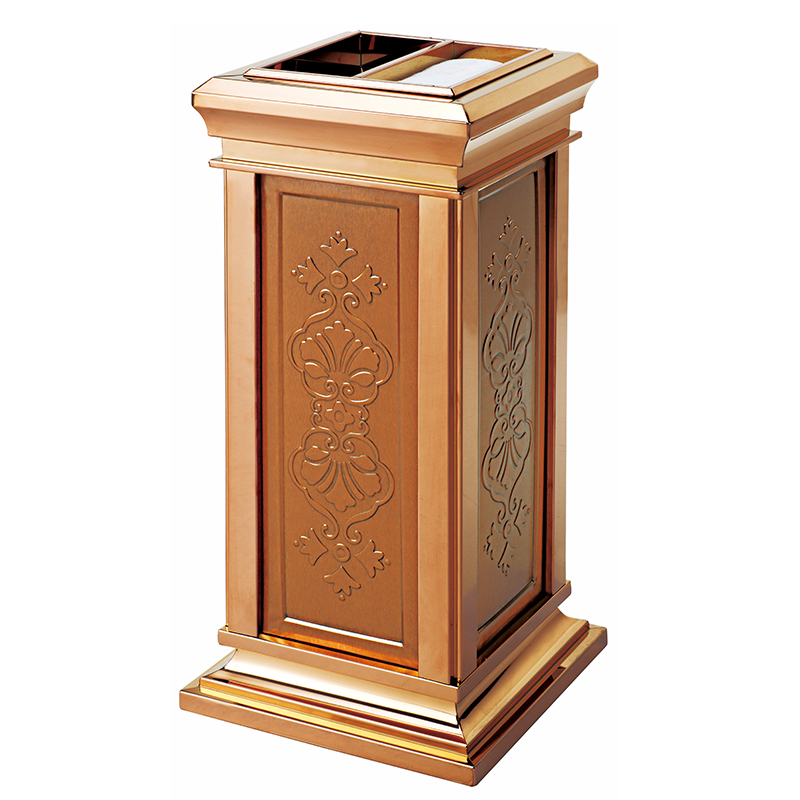 Luxury pressed stainless steel paste - plated copper royal soot trash bin Hotel trash bin