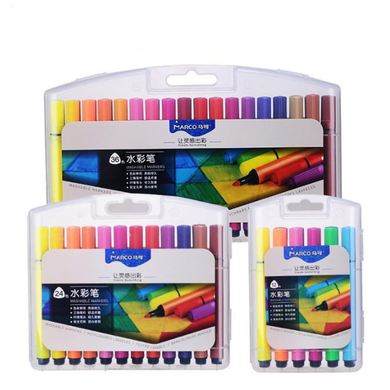 Marco Water Color Pen 24 Color Triangle Coarse rod 36 Color washable watercolor pen 4630 washable 12 color watercolor pen paintbrush Color pen Children graffiti painting pen Color pen-pen Color pen