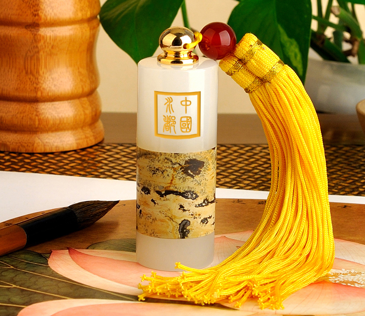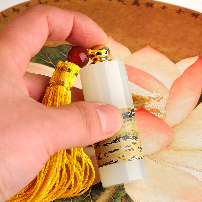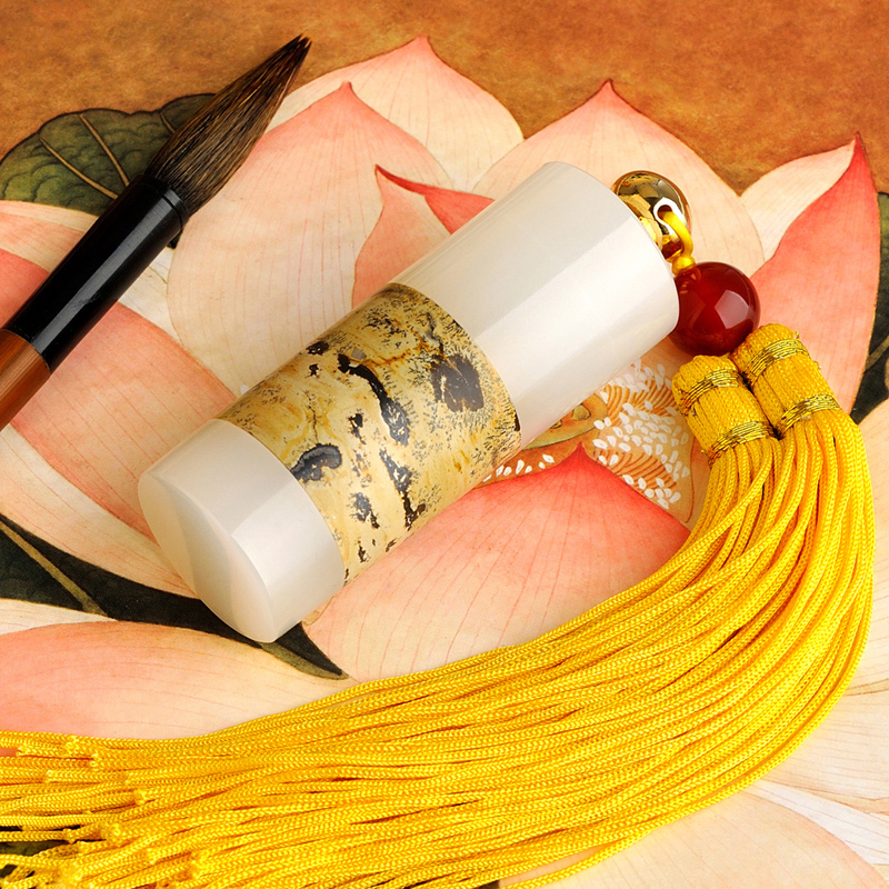 Natural white jade Chinese painting stone seal jade gift decoration name seal teacher with calligraphy calligraphy and painting customization