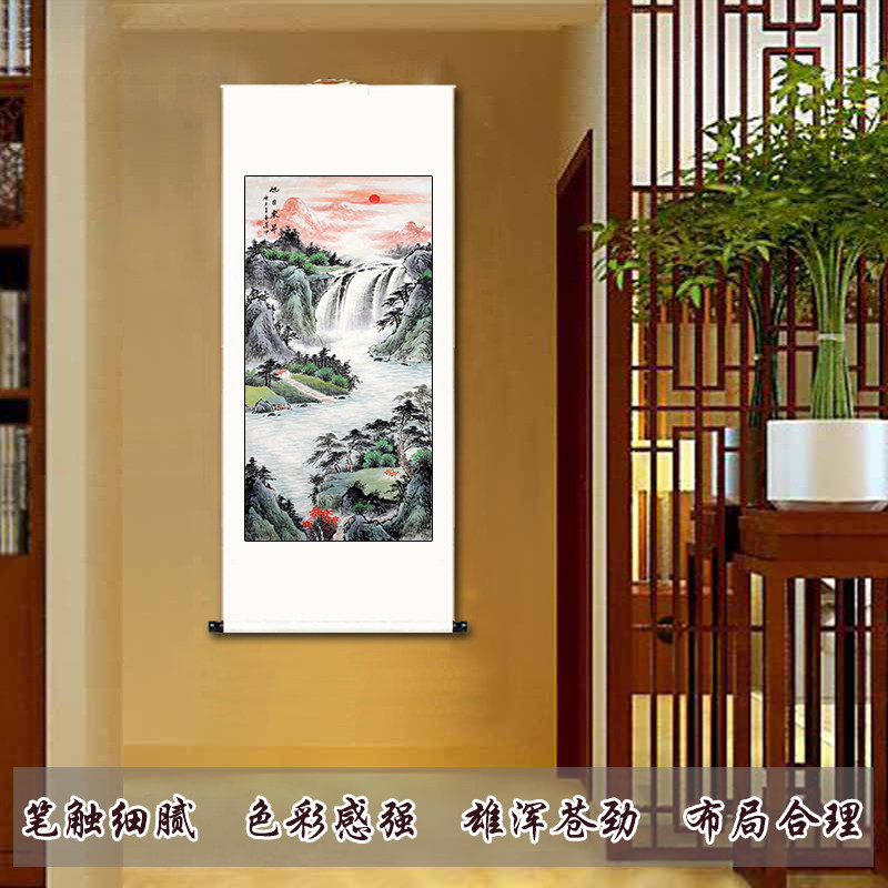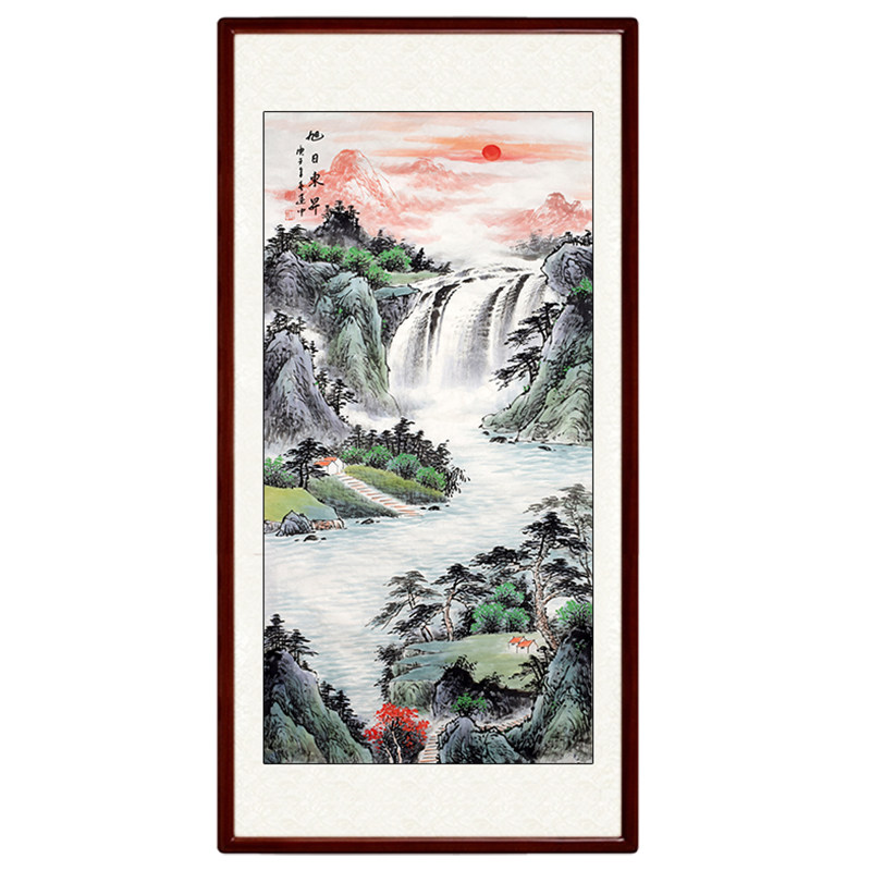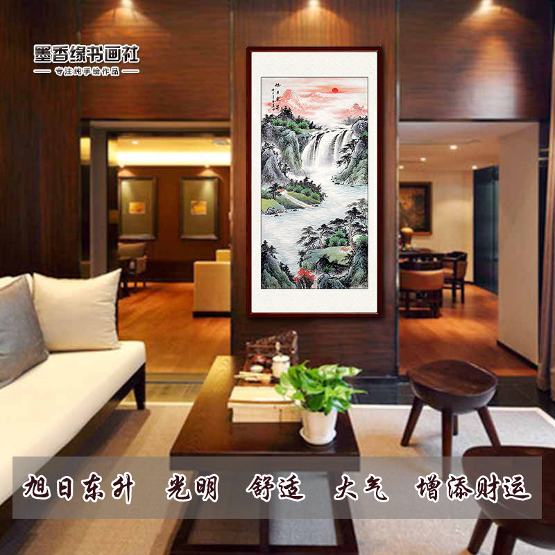 Sunshine Dongsheng pure hand-drawn four-foot vertical landscape painting authentic porch office hanging scroll decoration painting