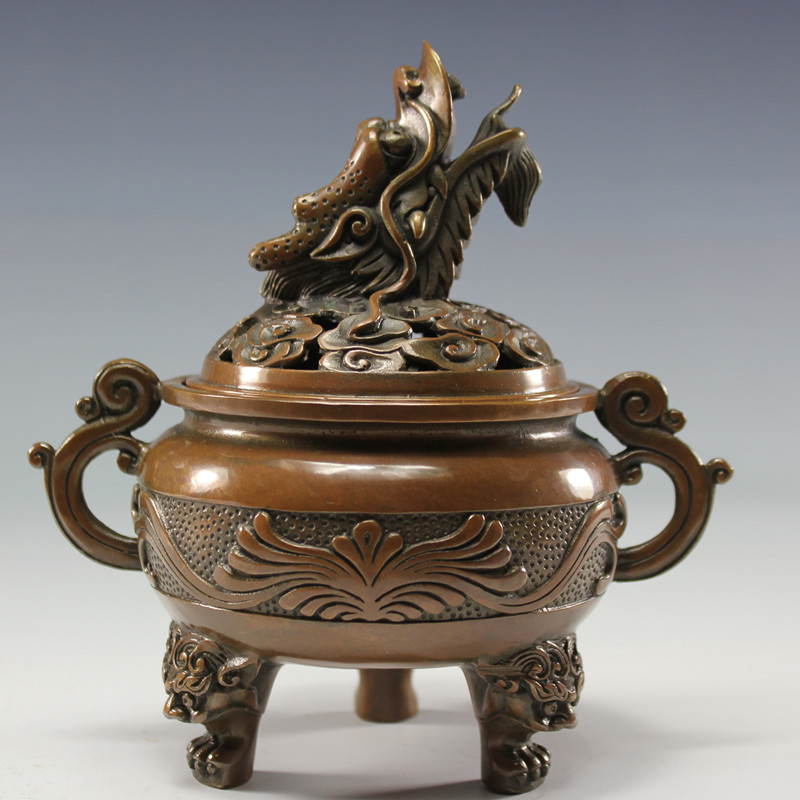 Pure copper boutique faucet smoke furnace antique Guishan fragrance fragrance fragrance plate Buddhist Toys Antiquities Shunde De Furnace Collection