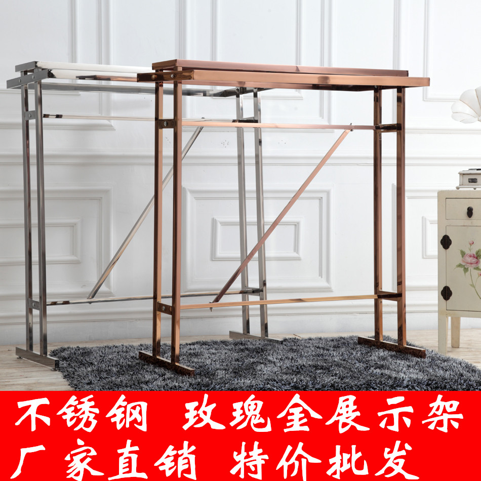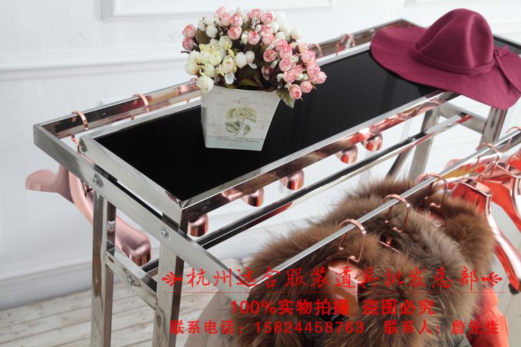 Clothing store shelf rose gold clothing fur rack mirror parallel bars middle island floor clothing display rack with plate shelf