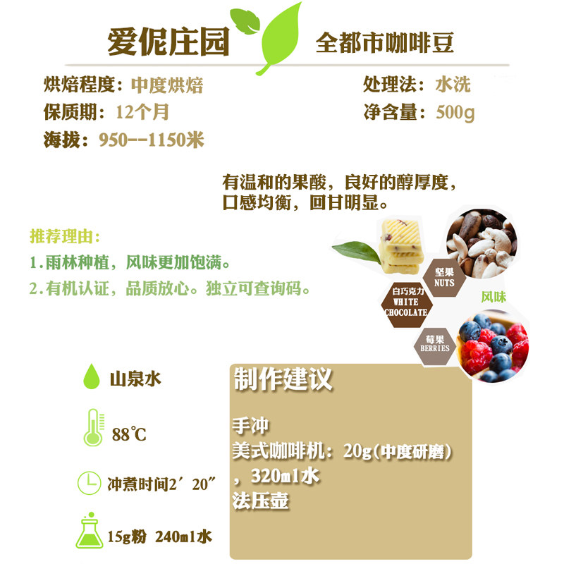Aini Manor All city medium roasted coffee beans Yunnan Pu'er coffee is home to the same 500g