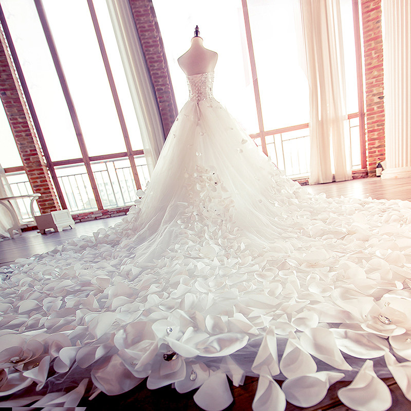 Famous bride wedding dress bride 2018 new European and American tail wedding dress female princess dream wedding dress 991